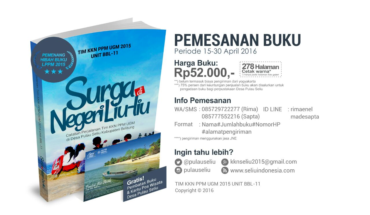 Kami membuka order buku pada pertengahan April 2016 dengan mempromosikan Surga di Negeri Liu-Liu melalui berbagai media sosial baik milik Seliu maupun milik pribadi Tim BBL-11, bahkan kami juga minta warga Seliu untuk bersama-sama melakukan promosi. Syukurlah, pada cetakan ketiga ini buku kami banyak mendapat respons positif. Banyak yang memesan dan tertarik membaca untuk mengetahui kondisi real Pulau Seliu yang kami kemas dengan bahasa santai dalam buku setebal sekitar 280 halaman itu. Ada tim kecil yang beranggotakan beberapa mahasiswa Tim BBL-11 yang bertugas mengurusi buku Surga di Negeri Liu-Liu. Kami sepenuh hati melayani pesanan order yang masuk, mempersiapkan buku untuk dikirim ke lokasi-lokasi pemesan, dan mengirimkannya baik via Pos Indonesia maupun JNE.